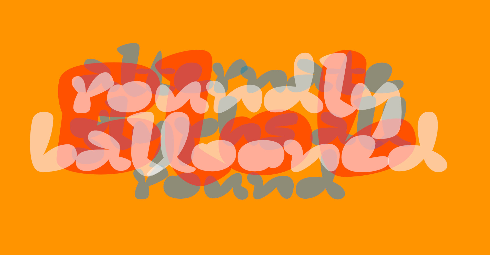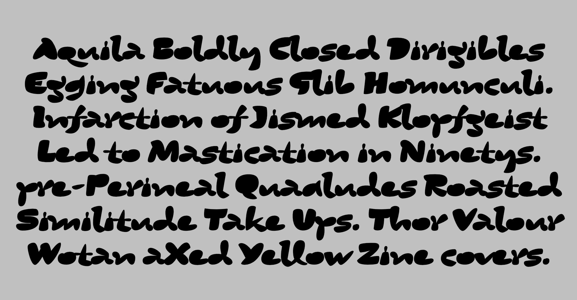 If you are a committed modernist, there is probably no need for you to read any further ¶ These letters are an exercise in extremes, historical reference and joyful drawing activity. The initial offering of this EnjoyFun family comprises two quite different, yet related sets of letters: Squodge and Bone. Squodge takes its name from the descriptive text for Hipsterpotamus, but has no wish to steal its bloated thunder. Squodge is a far curvier affair than that fellow: a weighty, slightly italicised counterless collection of rascals, with elements of balloon animals; dough; juicy fruits; slices of yummy pie, whipped cream and er... other things ¶ Bone is the skeleton of Squodge, a slender design that follows many of the mannerisms inherent in its weighty sibling, and has more chance to display its historical influence. Overlayment. as shown in some of the images above, demonstrates that they share many characteristics ¶ The fonts also contain a second set of lettershapes for all capitals and lowercase, special code within these automatically ensures that double letters are not visually repeated, and of course, the whole palette of letters are available to you for your own word compositions ¶ Further releases within the EnjoyFun family will show that this overlaying business is built in to these designs. As the images tantalise, there are some additional designs to come that will create a playset of shapes for layering, mixing and colouring-in your words ¶ Subscribe to the newsletter using the link above to be kept informed of these new releases.